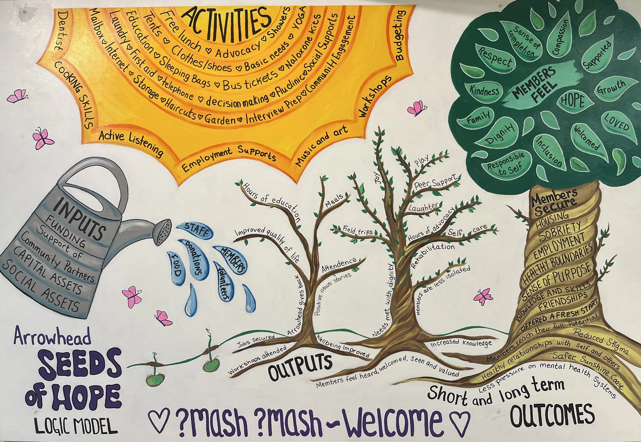 And so we decided we needed to create a visual representation. Again we worked together and created this image - the Seeds of Hope - Arrowhead Logic Model. A huge thank you goes to Rachel for her amazing artistic skills. It now sits proudly on the wall in the dinning room. We look at it every day. Take a few moments to explore the image, zoom in for the little details and zoom out to see the big picture. We hope you love it as much as we do.